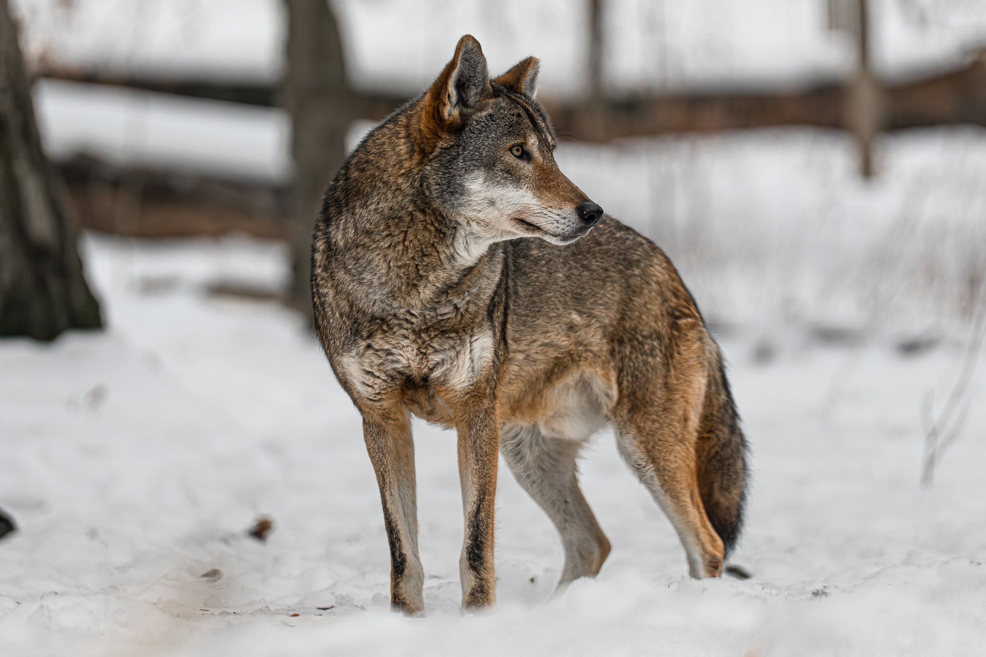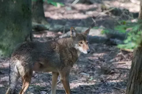 Distinguishing Characteristics: Red Wolves are generally smaller than the Gray wolf. They tend to have more narrow proportions, with longer legs and ears, and shorter fur. Their coat has a mixture of colors, ranging from cinnamon, tawny, gray, or black, while the back is normally blackish. The muzzle and limbs are tawny and the tail is tipped with black. In winter, the reddish color is dominant. An annual molt takes place in the summer.