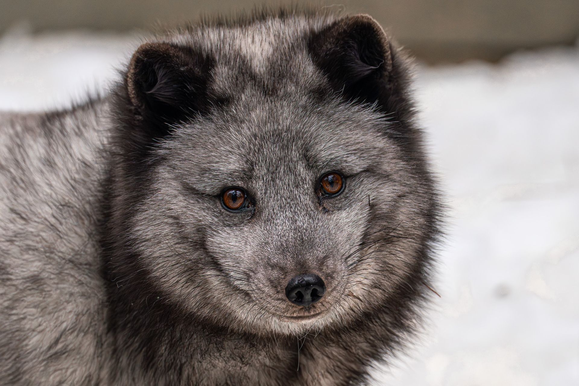 Distinguishing Characteristics: Due to the extreme changes in climate in the Arctic region, the Arctic fox has a cyclical coat change. In the harsh winter months, their coat is thick and bright white to blend into the snow-covered tundra. During the warmer summer months, they shed their white coat and instead have a gray/brown coat. Their ears are also short due to the harsh temperatures. Arctic foxes come in two morphs (or colors): white and blue-gray.