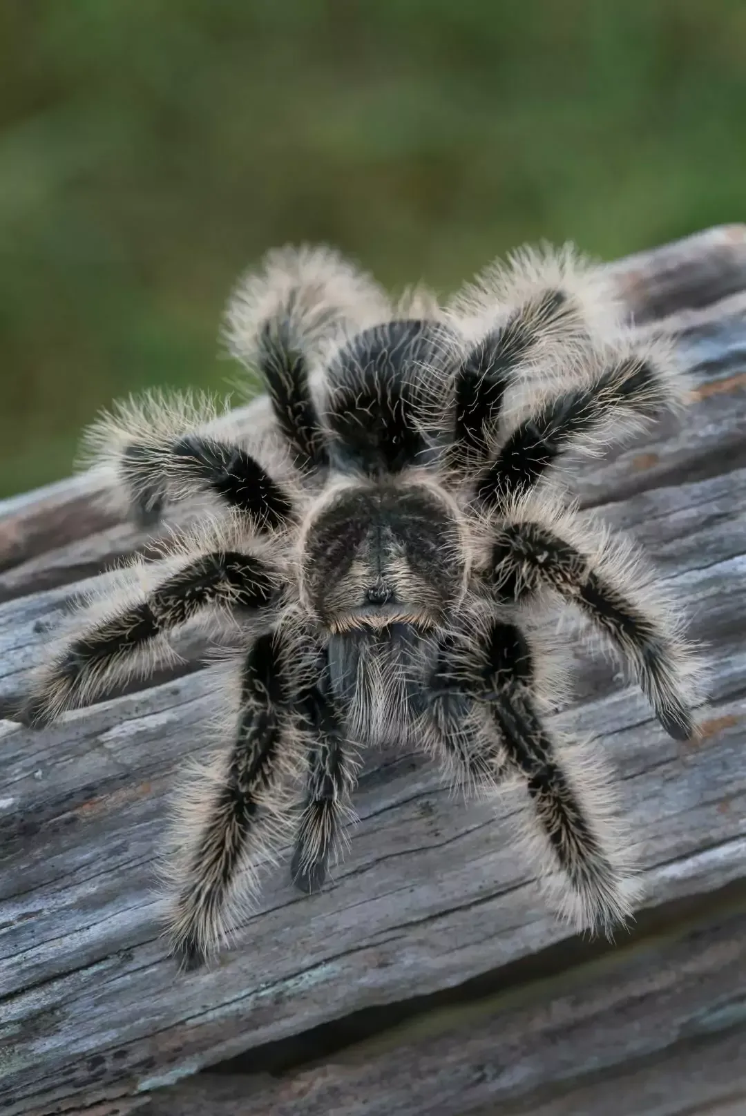 Distinguishing Characteristics: The Curlyhair tarantula is a plump-bodied spider, covered with dark brown to black bristles that start light in coloration as a juvenile and darken as the tarantula ages. It has a golden-bronze sheen due to longer gold bristles that cover the whole body, which are particularly dense on the hind legs. Both male and females grow to have a leg span of just over 6 inches (15 cm). Males are often a lighter bronze color than females.