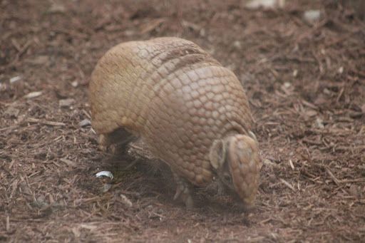 Distinguishing Characteristics: They are dark brown and heavily armored with a thick, leathery shell that is usually segmented into 3 bands. This armor covers the tail, head, feet, and back of the animal. The tail is very stout and immobile. The middle three toes on the back feet are grown together and have a thick claw. The forefeet toes are separated and have 4 claws.